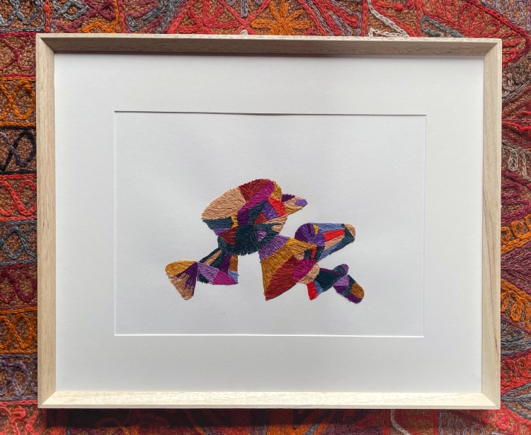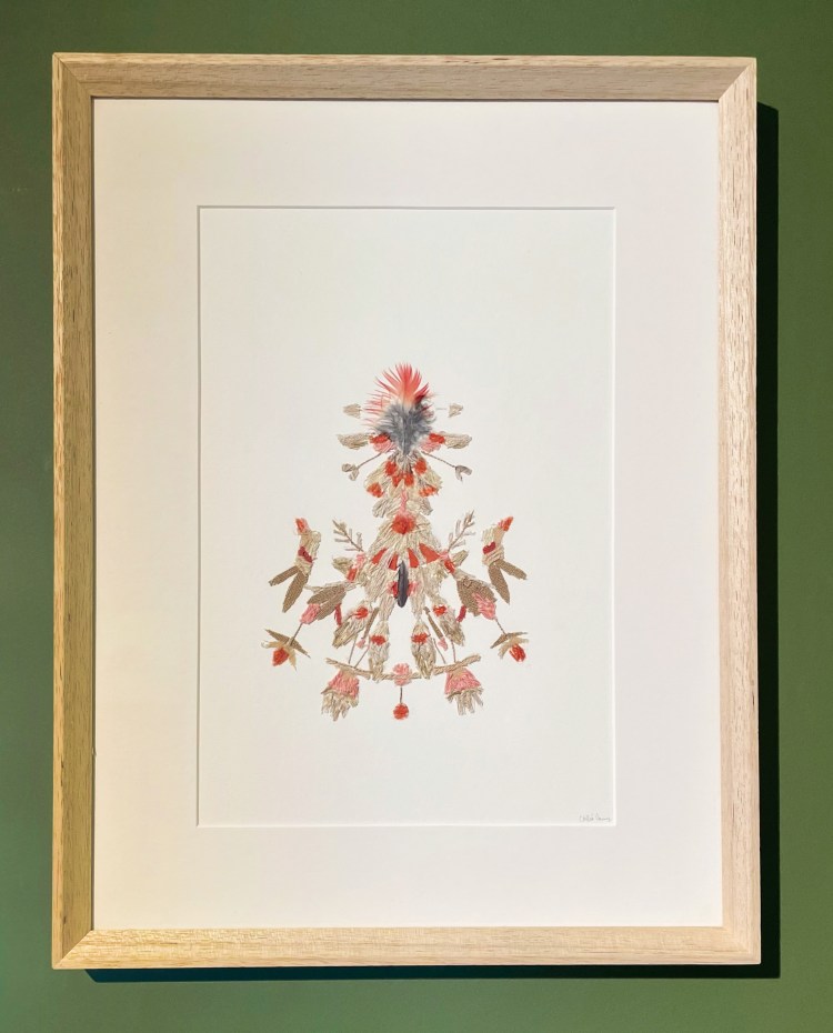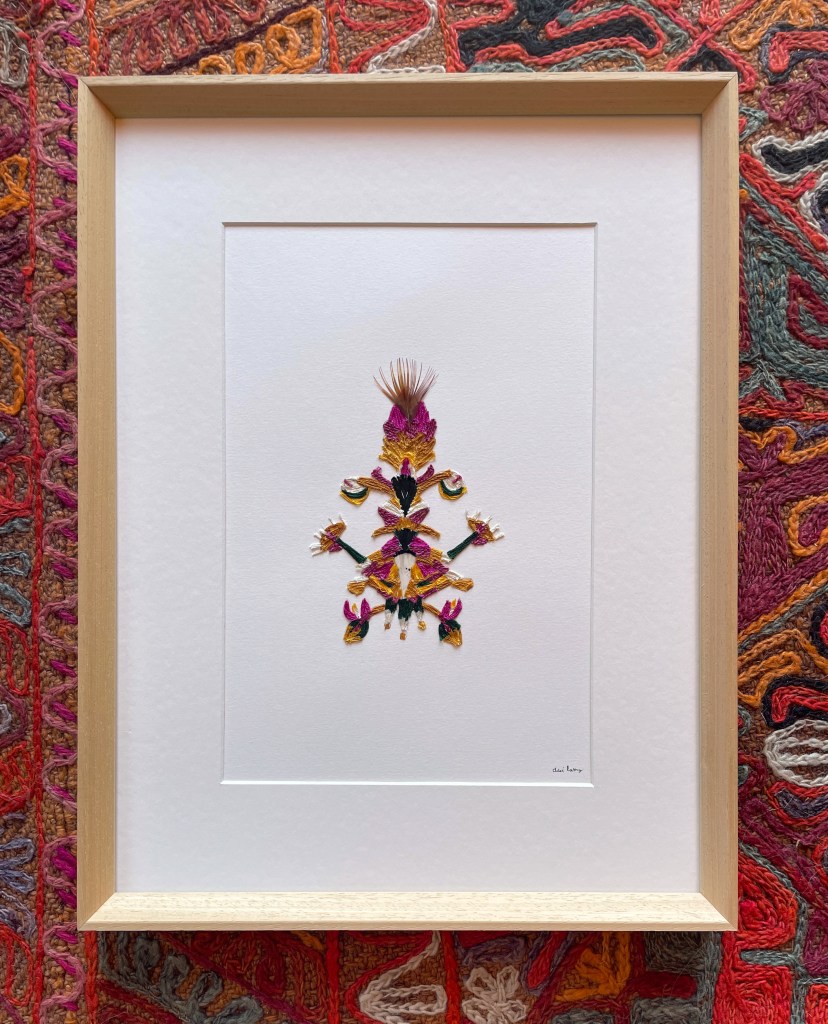 Cette démarche s’inscrit dans une relation personnelle à la mythologie. Dans les mythes, les fils relient, guident, les objets ont des pouvoirs. Le fil devient un outil de passage, entre fragilité et résistance. Au travers du collage de fils, j’explore la notion de rituel, de soin, de réparation.