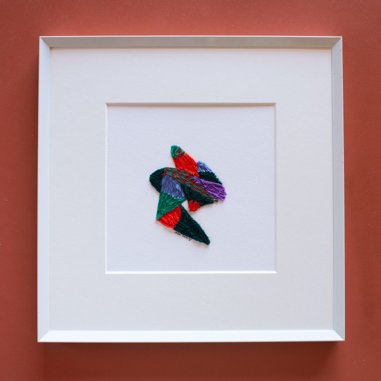 L’intuition guide le processus de composition : les fils sont assemblés sans schéma préalable, selon des choix immédiats, dictés par l’inconscient, la couleur ou le rythme du geste. Cette approche me permet de capter des correspondances invisibles et de laisser émerger des relations sensibles plutôt qu’un discours narratif.